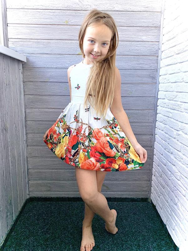 Платье в идеальном состоянии.Одевалось несколько раз.Выглядит в жизни даже лучше, чем на фото.ПОТ 30 см, ПО под руками 31 см, длина 64 см.По бирке 110/5 лет.