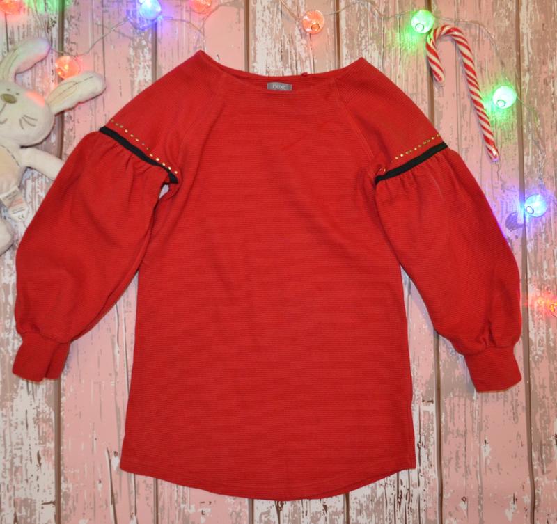 Платье туника Некст с пышными рукавами на 7 лет Длина 54 см, рукав от горла 49 см, ширина 34.5 см Цвет красно-малиновый, на фото засветило