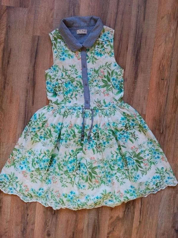очень красивое платье легкое ХБ на 8 лет ( длина 66см, длина до юбки 29см, пог 31см)