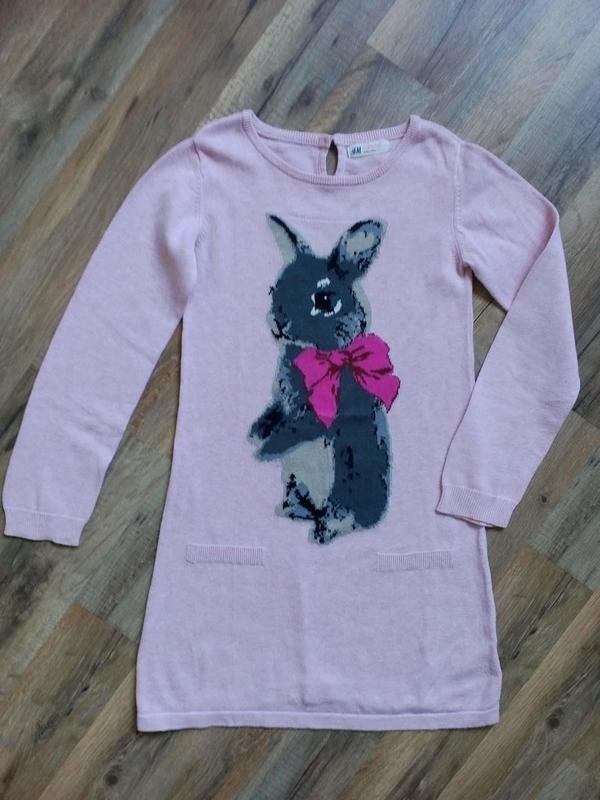 Платье- туника мелкая вязка на 6-8 лет рост 122-128 Длина 67 см ПОГ 32 см Рукав 49 см