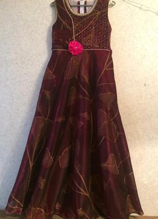 Платье маленького размера s на стройную девушку. Очень красивая ткань, смотрится роскошно. Подьюпник на фатине, что создает обьем. Замеры под руками 40см. Длина от плеча до талии 34см, длина платья миди 132см Молния сзади