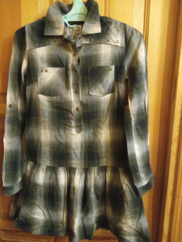 🦠 Стильне плаття-туніка в клітинку, 🦠 100 % бавовна, 🦠 стан ідеальний (купувала в Польщі для дочки, оділа декілька разів і швидко виросла) 🦠 Плаття застібається на гудзички, є дві кишені , рукав можна робити коротким за допомогою гудзичка і хлястика. 🦠 Десь приблизно на ріст 140-150 см ( ми зрізали бірку, де ріст вказаний, а оскільки дочка дуже висока, то точний ріст вказати важко). Подаю заміри, по яких можна зорієнтуватися: ❗ Довжина виробу - 78 см ❗ ПОГ - 39 см ❗ Рукав- 56,5 см ❗ Плече - 9,5 см За додатковою інформацією звертайтеся.