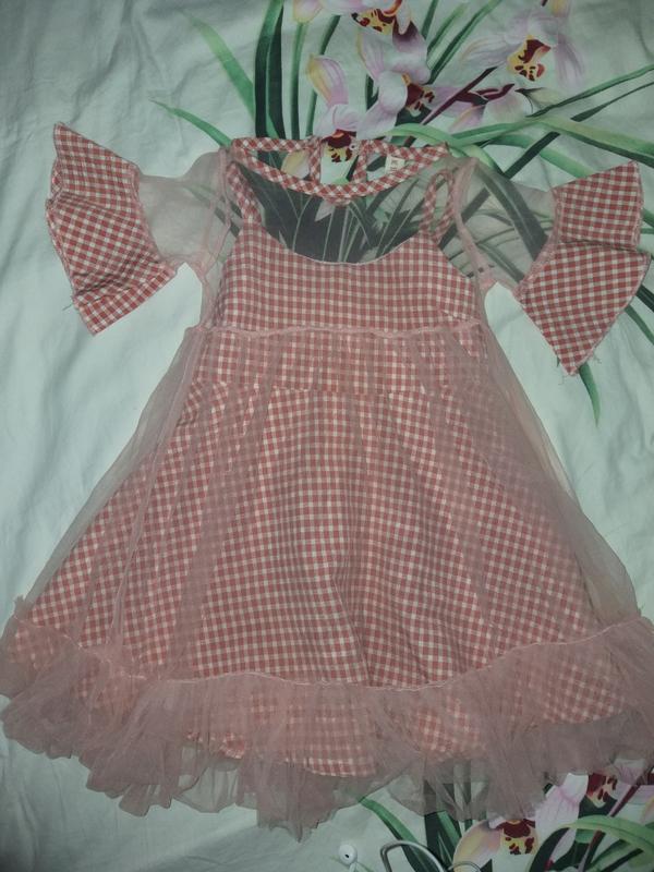 Оригинальное летнее платье-сарафан персикового цвета на девочку 5 лет