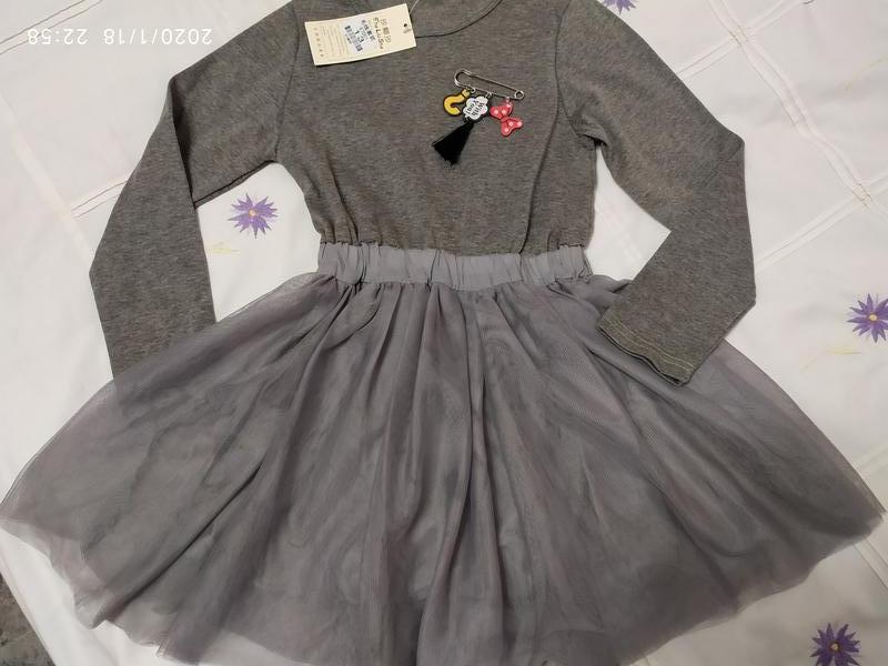 красивое платьице с рукавом ,цвет серебро ,талия на резинке ,длина 63 см в груди 32-40 см , высота топа 30 см ,рукав 43 см ,без ньюансов ,новое