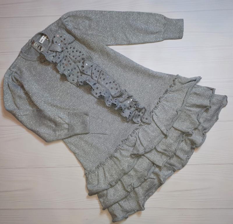 Платье с блестками M&S 4-5 лет бу Состояние нового Длина 60 см Ширина груди 32 см Плечи 22 см Длина рукава от плеча 37 см, от горловины 43 см Цена 170 грн