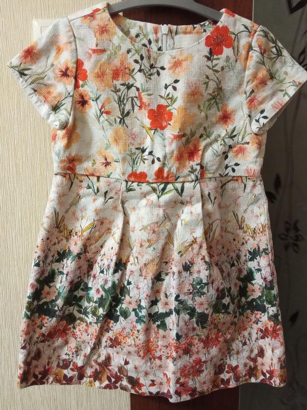 Платье с плотной жакардовой ткани, с єффектом рисунка на ткани. Размер указан 110, но подходит больше на 98/104. На третьем фото передан максимально цвет и рисунок. Замери по запросу