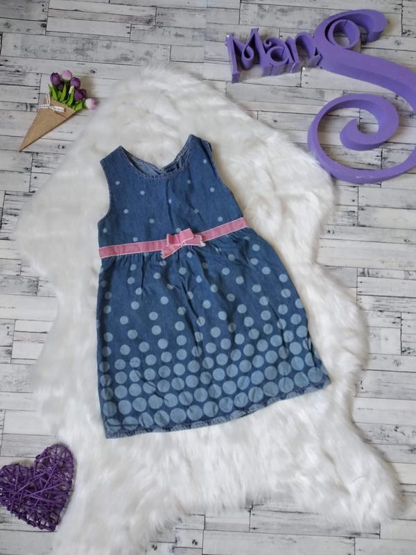 Джинсова сукня сарафан на дівчинку синього кольору в горошок на зріст 104 см