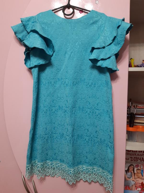 Нарядное платье красивого голубого цвета, на спинке треугольничком
