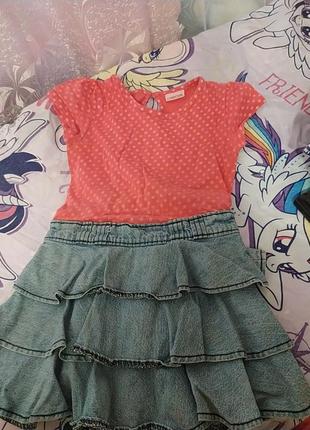 сарафан сверху ХБ, снизу джинсовая юбка. очень красивые. длина общая 51 см. ширина 26 см. смотрите замеры. примерно 3-4-5 лет