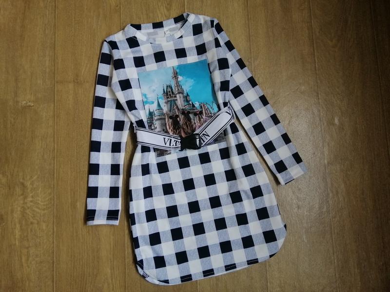 Стильное платье в клетку с боковыми карманами, ткань французский трикотаж. Аппликация пришита. Пояс идет в комплекте. Цвет темно синий+белый 128 140 146 152 158 Замеры осуществлялись вручную, с одной ростовки, возможна разбежность в 1-2см. 128 - длина 63, пог 32, рукав 44 140 - длина 67, пог 35, рукав 48 146 - длина 70, пог 36, рукав 50 152 - длина 72, пог 38, рукав 52 158 - длина 74, пог 40, рукав 53
