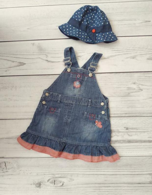 Джинсовый сарафан Next, р. 86 на 12-18 мес. Носилы вплоть до роста 100-104 см. Качество шикарное. Замеры: пот 30 см, длина с бретелью (максимум) - 52 см.