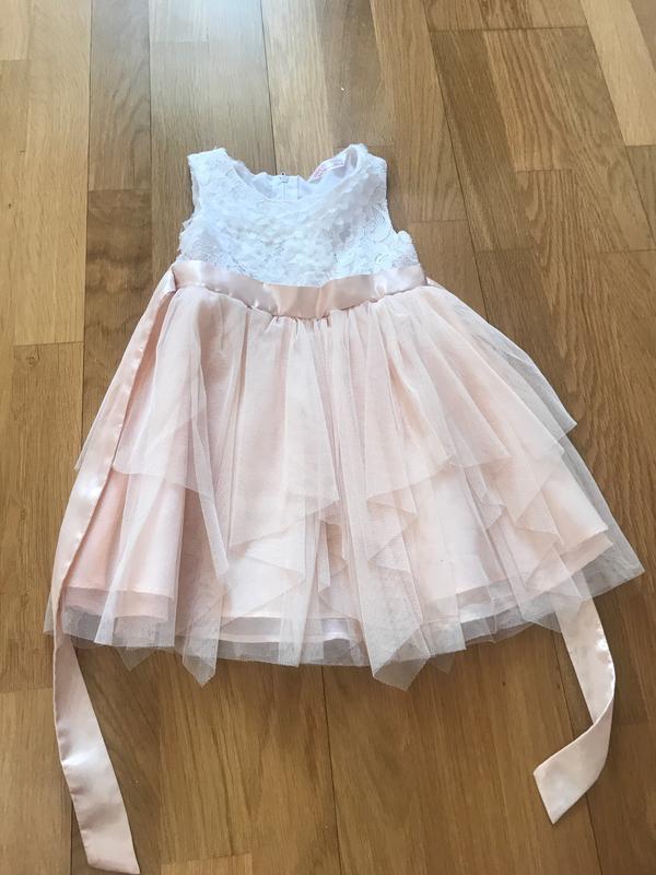 Нарядное платье, одевали пару раз, большемерит, лет до 2-3 будет. Цвет нежно персиковый)
