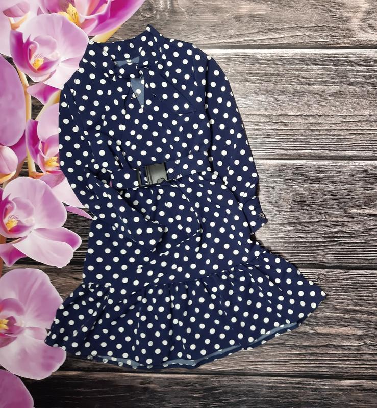 Платье ткань плотная вискоза , воротник - стоечка завязывается на бант , есть манжеты , в талии на резиночке , поясок в комплекте замеры Длина/рукав/пог 128р-63/42/31 134р-65/43/32 140р-69/46/34 146р-71/48/36 152р-71/50/37