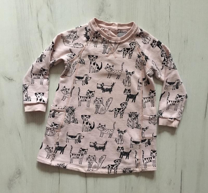 Платье свитшот , marks & spencer для девочки 2-3 г, плаття сукня 2-3 р, звіриний принт . Двухнитка . Довжина 48,5 см, ширина під руками 30,5 см