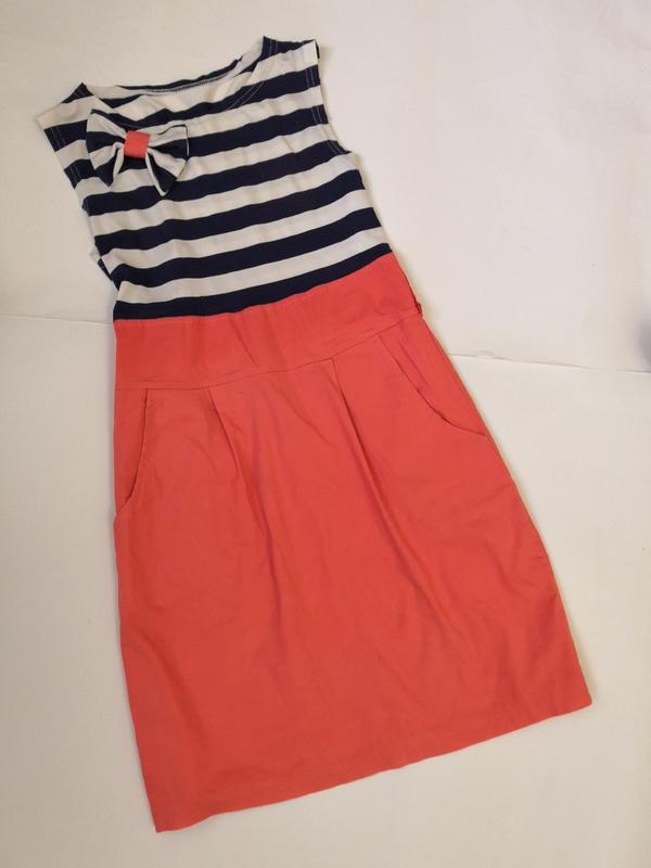 Красивое платьеце с карманами для девочки 11-13 лет. Длина 78 см, плечи 32 см, полуобхват груди 37 см, полуобхват талии 32 см (сзади в поясе есть лёгкая резиночка). Цвет как на фото. С обеих сторон есть карманчики. Спереди есть ньюансы: маленькие пятнышка, смотрите фото 4,5. Бирка с составом срезана, но ткань приятная к телу. Платье смотрится стильно и красиво.
