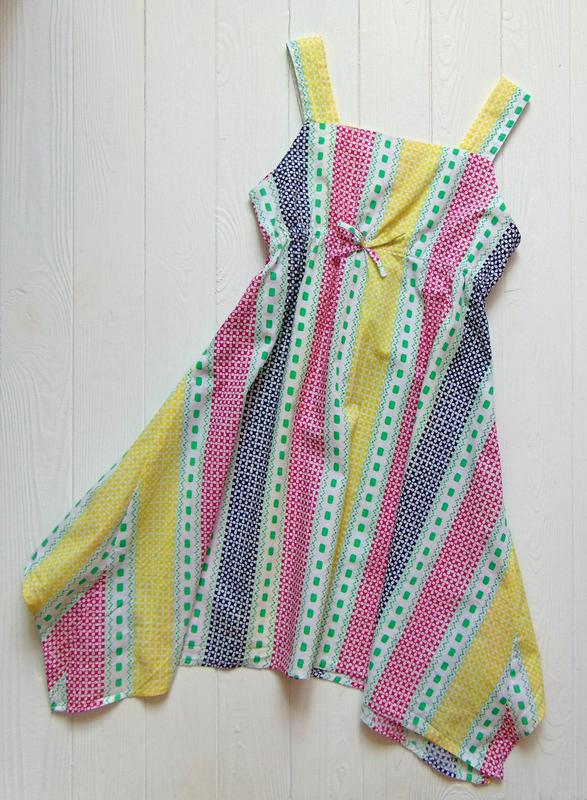 Яркий ассиметричный сарафан для девочки. Шлейки сзади крепятся пуговицами. Грудная клетка в районе спины на резинке, тянется. Под грудью резинка, тянется. Шикарное качество. Draken&Juvelen. Размер 10 лет, рост 140 см. Состояние: новой вещи. Состав: 100% хлопок. Замеры: длина 71 см, длина до пояса 22 см, ПОГ 34 см, тянется до 44Х2 см, пояс 30Х2 см, тянется до 41Х2 см. Цена 140 грн.