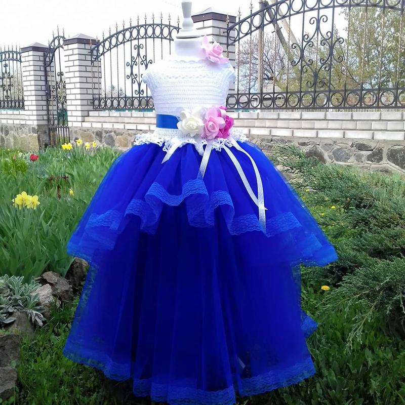 Платье выпускное бальное фатиновое нарядное на утренник на 6-7 лет синее