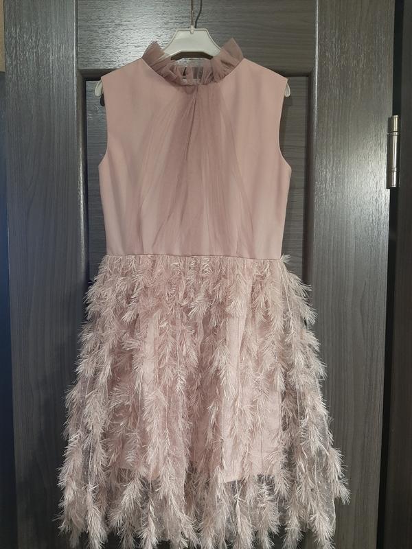 платье украшено эмитацией перьев очень элегантное, всегда найдеться повод одеть красивую вещь