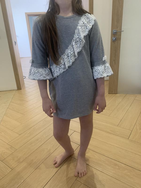 Трикотажное с кружевом! Куплено в Италии. Стан нового. На возраст от 5-8 лет на рост от 122, в зависимости от ребенка.