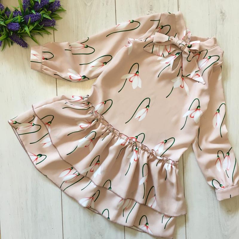 Невероятно красивое и нежное платье для маленьких модниц Ткань донакреп, на рукавах манжет Размеры: Длина/рукав/пог 128 см - 66/46/37 - 134 см - 68/47/38 - 140 см - 70/49/38 - 146 см - 73/50/39 - 152 см - 75/52/40 - 158 см - 76/55/41 -