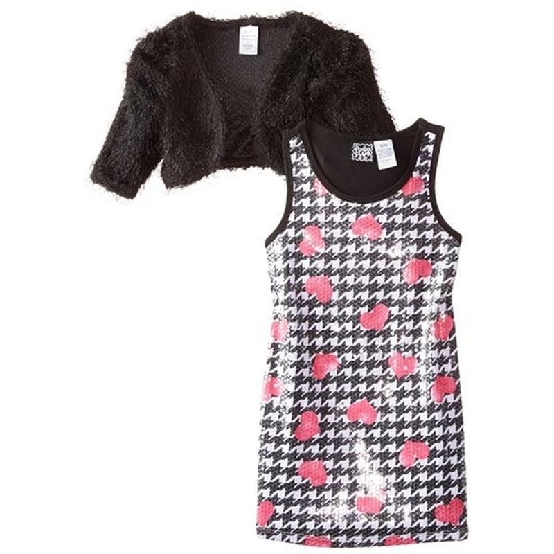 TM Pogo Club of N. Y. Сукню з болеро. Склад. Плаття: передня частина - 100% поліестер, задня частина - 57% бавовна, 38% поліестер, 5% спандекс. Болеро - 100% поліестер. Вік 5-6 років. Розміри. Плаття: довжина по спині - 56 см, ог - 33*2 см, ширина по брителькам - 23 см, ширина внизу - 39 див. Болеро: довжина - 23 см, ширина по плечовим швах - 24 см, довжина рукава від плечового шва - 21 див.