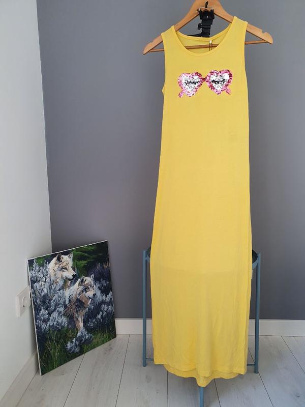 Надзвичайно легенька сукня на літо для Вашої принцеси, паєтки перевертаються, змінюючи вигляд сукні. Розмір вказано 152, може бути більше! Нова!