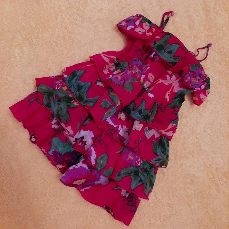 Воздушний літній сарафанчик,для маленької квіточки.Тканина просто невагома,як хмаринка. Довжина з брительками 52см ПОГ 33см ПОТ 25-32 резиночка.