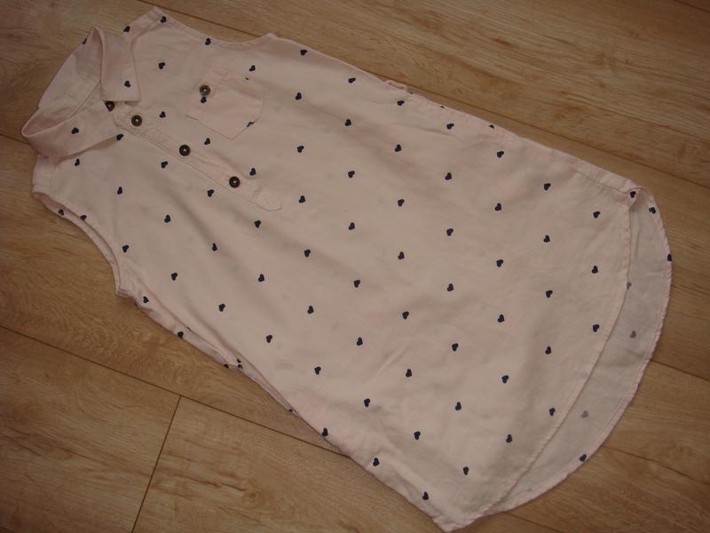 6-7лет НМ дл.63-68 шир.35 легкое платье есть шлицы под пояс нежный пудровый цвет и темно синие сердечки как новое