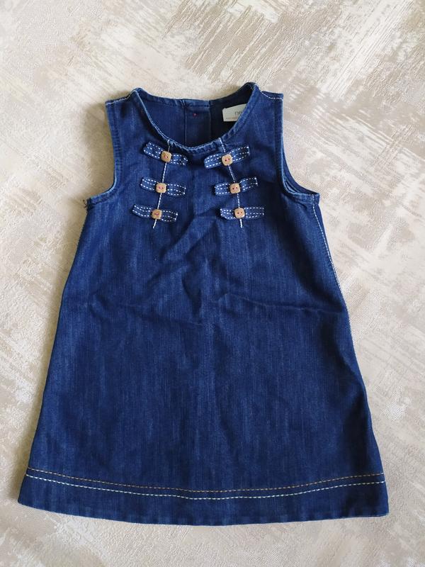 Джинсовый сарафан Next. На возраст 1,5-2 года, рост 92 см. Застёгивается на спине на пуговицы. Очень классный.