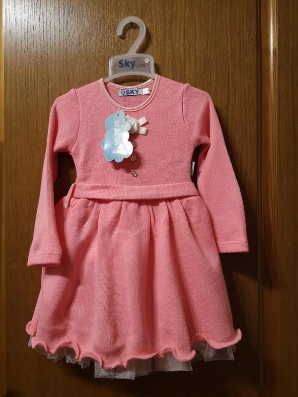 Платье на девочку на 1,5-2,5 года с гипюровой нижней юбкой. Новое, с бирками. Продам детское вязаное трикотажное платье пр-ва Венгрия фирма SKY-kids Вязаные платья из трикотажа — настоящая находка для маленьких модниц. В платьях и сарафанах из мягкого трикотажа девочки будут чувствовать себя комфортно в любой ситуации. И при этом, всегда выглядеть нарядно и аккуратно. Фирма SKY делает все возможное для того, чтобы ее продукция понравилась и мамам и маленьким красавицам. Эта вязаная детская одежда обладает современным, оригинальным дизайном, ее отличает высокое качество и доступные цены,долговечность материалов, надёжность фурнитуры, стойкость к выцветанию, пригодность к частым стиркам и пр. Наши изделия производятся на немецком оборудовании из высококачественной пряжи.Вся используемая нами пряжа имеет сертификаты соответствия Европейским стандартам. Цвет персиково-розовый. Примерно как на 1 фото. Размер есть 80, 86 Состав ткани акрил 60%, шерсть 40% Размер 80: ПОГ - 24см, длина 43см, плечи 20см, рукав от плеча внешний замер - 26см, внутренний - 21см. Размер 86: ПОГ - 24см, длина 46см, плечи 20см, рукав от плеча внешний замер - 27см, внутренний - 21см Перешлю