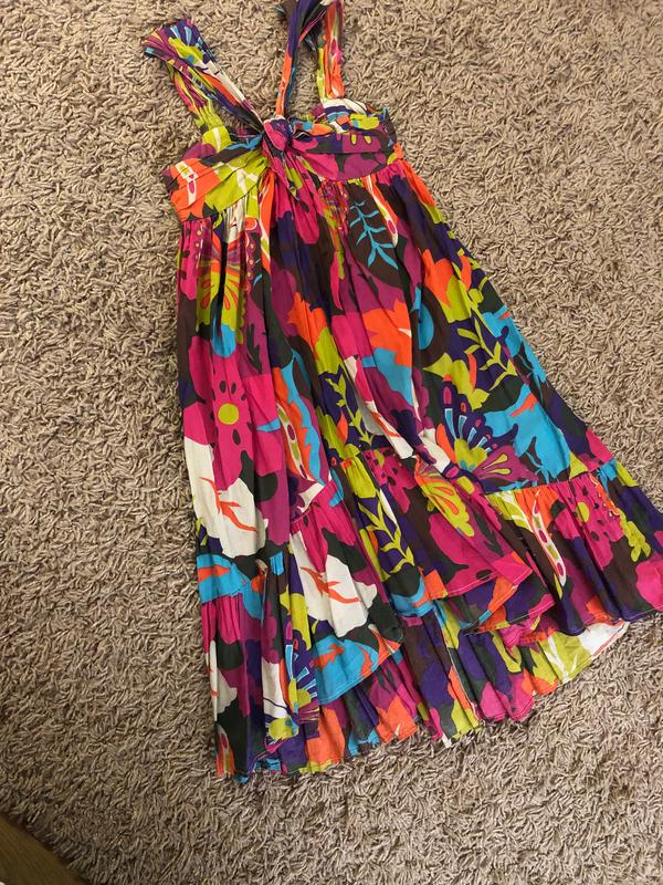 Очень легкий,Можно носить с 6 до 8-9 перед более коротким задом длиннее,яркий,очень красиво смотрится,котон не парить, при покупке больше товаров понижкалдownПОГ -39, длина перед 75, зад 90, 100% коттон