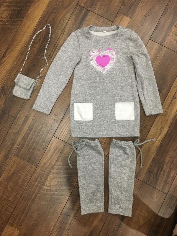 Стильное платье для девочки В наборе есть гетры и сумочка Сердечко - перевертыш меняет цвет Рост 116 Есть кожаные накладные кармашки