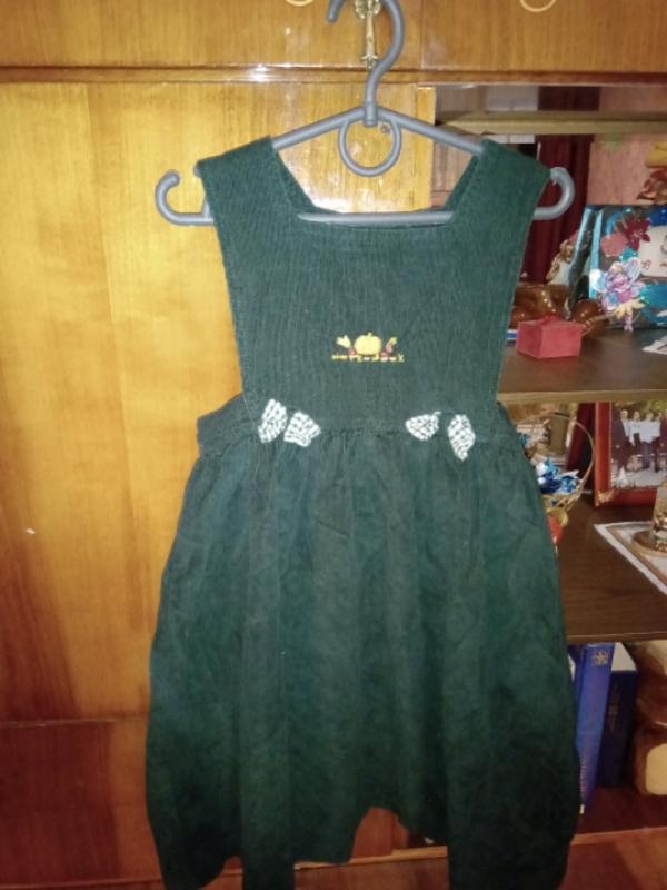 вельветовий дуже гарний сарафан,темно-зеленого кольору,стильний,з другої сторони пуговички,гарний покрой,тканина коттон,без всяких дефектів абсолютно,майже новий