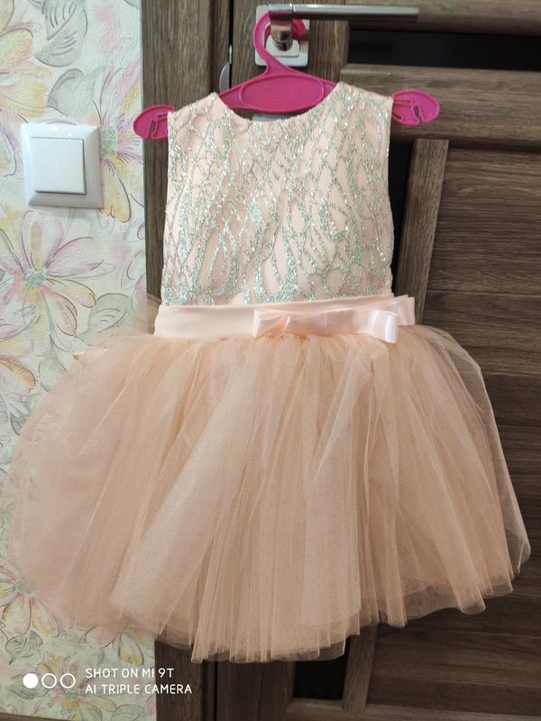 Красивое нарядное новое платье для девочки 2 лет. пышная фатиновая юбка, внизу подъемник чтоб не кололось. Сзади огромный красивый бант, затягивается корсетом, по этому подходит на любую девочку. Очень красивые блёстки сверху на корсете. Спереди так же маленький элегантный бантик.