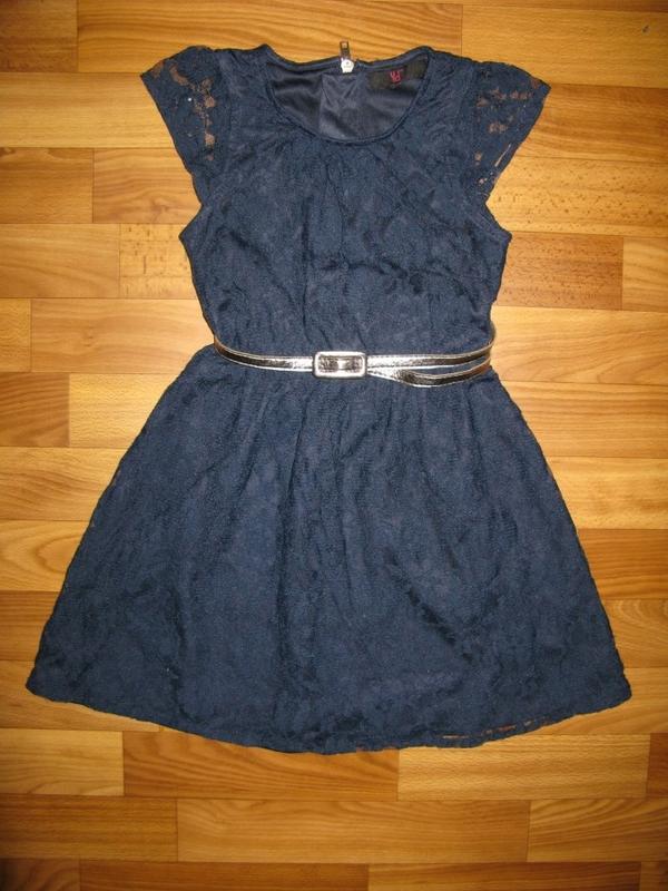 темно-синее Y. D. на 7-8 лет (128), можно раньше. Верх -кружево, на трикотажной подкладке (100% полиестр). Сзади змейка. Дл от плеча- 64 см, ПОГ-32 см, ПОТ- 25/30 см (в талии резиночка). Состояние отличное, продается без пояса