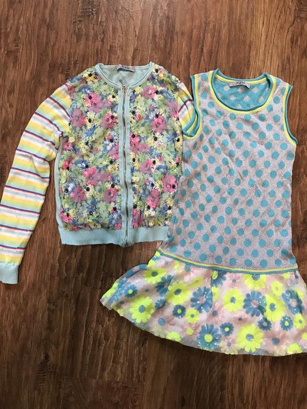 Нарядный костюм двойка, куплен в Мега Антошке, фирма Flash. На рост 134-140. Низ платья в пайетках.