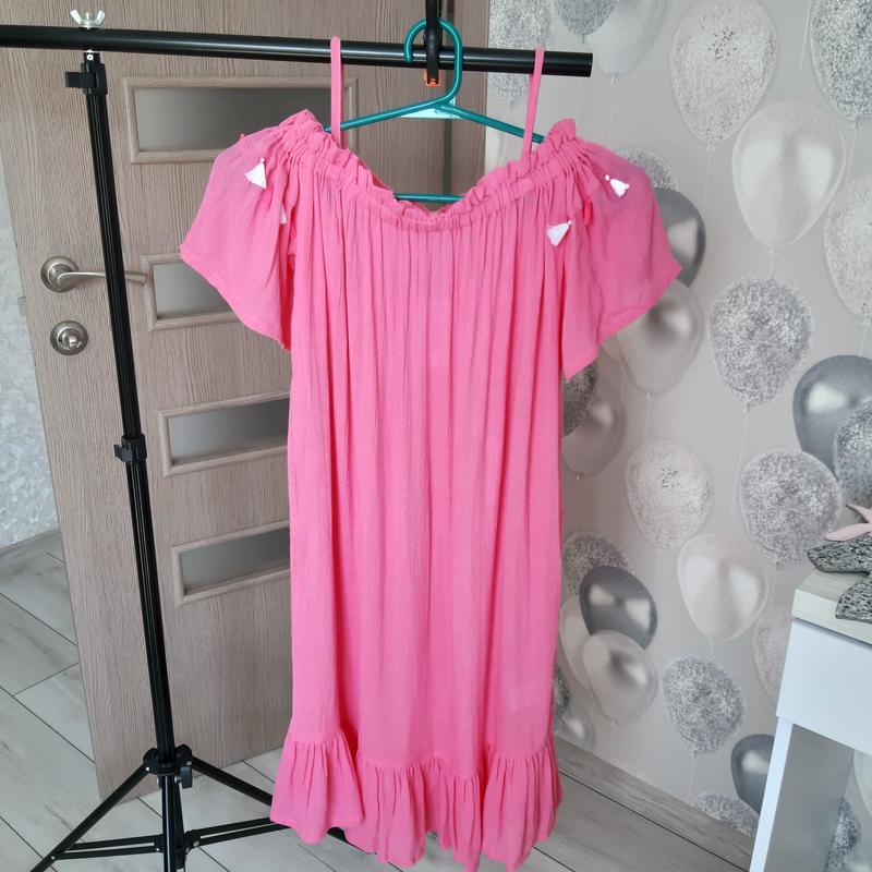 Обалденный легкий вискозный сарафанчик Matalan для девочки 12лет,будет и на девочку постарше. Новый,есть малюсенький фабричный нюанс на последнем фото показала-ниточка на рюше внизу как настрочена.В носке незаметно абсолютно. Дл.от бритель к низу 95см ПОГ 43см Модель свободная,ширина значения не имеет.