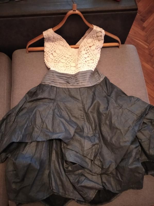 Платье с пышной, оригинальной юбкой, с открытой спинкой.