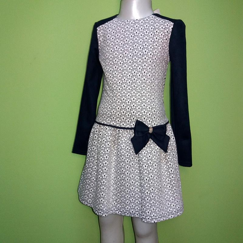 Платье для девочки ТМ Мевис 1876 Сзади по спинке идет молния. Ткань: трикотаж, рукава сделаны из ткани "под замшу" Состав: 45% хлопок, 50% полиэстер, 5% спандекс Замеры: р.122: длина по спинке - 60,5 см, рукав - 43,5 см, ПОГ - 28 см р.146: длина по спинке - 69,5 см, рукав - 52 см, ПОГ - 34 см