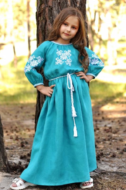 Розміри в наявності:104,110,116,122,128,134,140(146,152+10%)(158+20%) Длинное детское платье из льна для праздничных событий Модель ДП34/2-271 Вышитое длинное платье для девочки с рукавом 3/4 Ткань: 100% лен (производство Италия) Цвет ткани: бирюзовый Цвет вышивки: белый Лен цвета лазури послужил идеальным фоном для белоснежной вышивки. Цветочный орнамент служит не только украшением платья, но и таит в себе сакральный смысл. Образ дополнит сумочка с идентичным узором. Идеальный look для маленькой принцессы готов! По желанию, Вы можете дополнить образ сумочкой с идентичным узором.