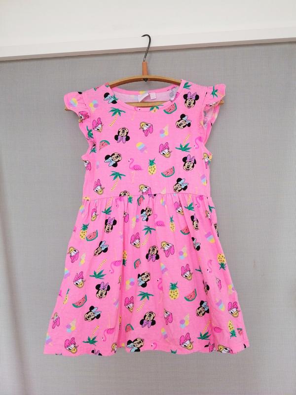 Яркое трикотажное платье с изображением героев любимых мультфильмов: Минни Маус и Дейзи Дак. А также, ананас, арбуз, мороженое, фламинго). Замеры: ПОГ - 33-39см ПОТ - 28-37см Длина - 57см Ширина низа - 65см