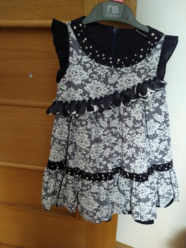 Красивое нарядное платье для девочки. Украшено пришитыми бусинами. А силуэт. Куплено на день рождение 2 года. Одето 1 раз, оказалось немного широкое, великовато.