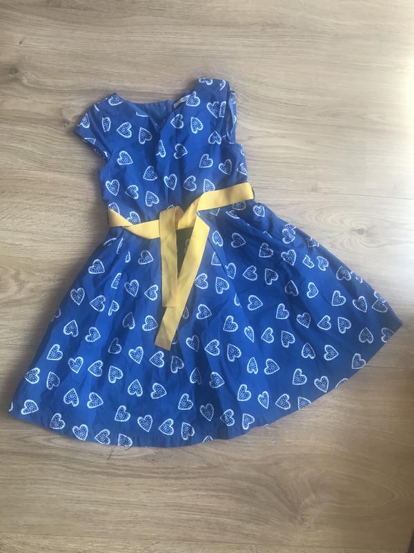 Платье с принтом сердечек. Легкое, красиво смотрится, очень удобное! Размер 5-6лет, длина 69см, ПОГ 29,5см.