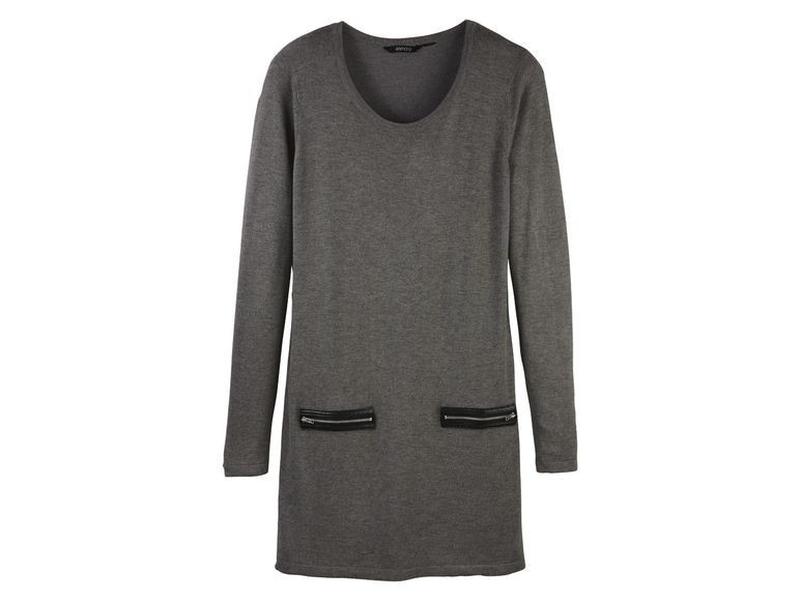 Туника отличного качества и пошива. Сделано в Германии, что говорит само за себя. Ткань: вязанный трикотаж. Ткань мягкая на ощупь, приятная к телу. Чуть растягивается. Средней плотности - не тонкая. Цвет: темно-серый; как на фото с моделью. Вживую камера не передала истинной насыщенности серого цвета. Прямого силуэта. Рукава- длинные. Линия плеча приспущена. Украшена впереди молниями с окантовкой из кожзама. Чудесная, качественная, нарядная туника. Написан размер XS (32/34). Подойдет и на І-М. Смотрите замеры, пожалуйста: Ширина по плечам - 36+ см; Ширина одного плечика (вместе с окантовкой горловины) – 8 см; Длина рукава- 61 см; ПО груди (под мышками) – 48 см, растягивается до 55 см; ПО талии – 43 см, растягивается до 53; ПО по нижнему краю изделия – 44 см; Длина изделия впереди от самой высокой точки плеча до нижнего края туники– 86 см; Новая, в упаковке, с биркой! Подписывайтесь на наш магазин и следите за обновлениями))