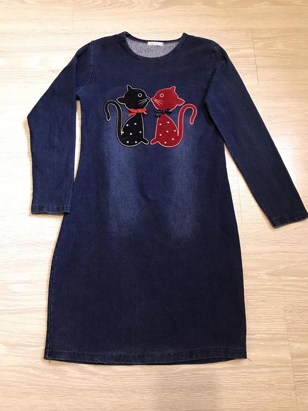 Джинсовое платье утепленное. Производство Венгрия. Состояние отличное. Одевалось пару раз. Длина-84см. Рукав-52см. ПОГ-38см. ПОТ-36см. ПОБ-44см. ПО низа -43см. Тянется немного.