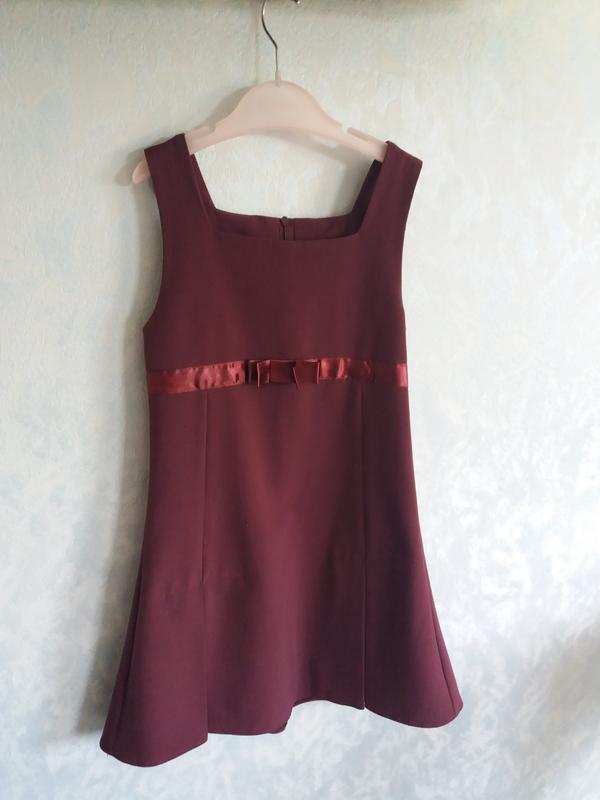 Шкільний сарафанчик бордо на дівчинку 2-4 клас. Вміру приталений, знизу йде легкою трапецією. Дуже гарно, стильно і ніжно виглядає. ззаду замочок до поясу. склад на етикетці. львівська фабрика.