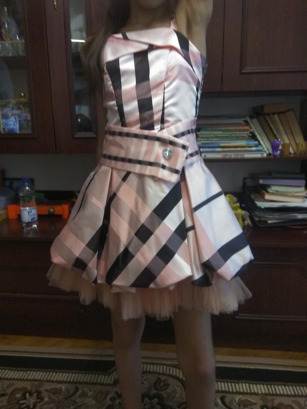Очень красивое платье! Состояние отличное, одевали всего два раза. Длина с брителями 63см + 6см фатин. Ширина под руками 32см, ширина пояса 27см, корсет можно сделать меньше за счёт шнуровки. Ткань как плотный шелк.