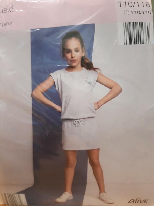 Платье для девочки Качественное трикотажное платье, сарафан для девочки от немецкого бренда ALIVE. ALIVE - немецкий бренд качественной, красивой и стильной одежды для детей и подростков. Мягкая и приятная к телу ткань создает максимальный комфорт. Одновременно нарядная и практичная модель. Талия на резинке Размер 110/116, на 6-7 лет - 1 ед. замеры: Длина от плеча до резинки - 40 см Длина от резинки до низа - 25см Плечи 37см ПОГ 32 см ПОТ 30см В оригинальной упаковке и с бумажной этикеткой. Сертифицированное международной системой тестирования текстильной одежды Oeko-Tex Standard 100