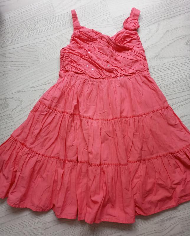 Красивый яркий модный сарафанчик для девочки 6-7 лет. Материал - натуральный хлопок, есть подкладка. На спине - резинка, тянется. Длиня сарафана - 65 см. Состояние новой вещи