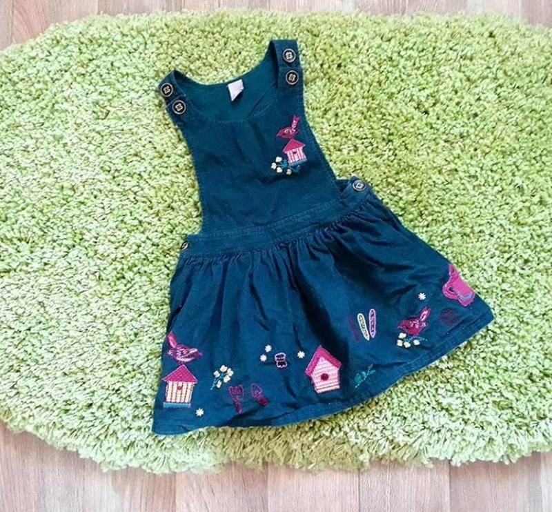 Очень красивый микровельветовый сарафан фирмы TU. Состояние идеальное!Качество супер. Мы носим такой в садик под любой реглан,отлично смотрится. Размер 2-3 года на на рост 92-98 см. Замеры: Длина 49 Ширина в поясе 47 Длина от плеча до пояса 25